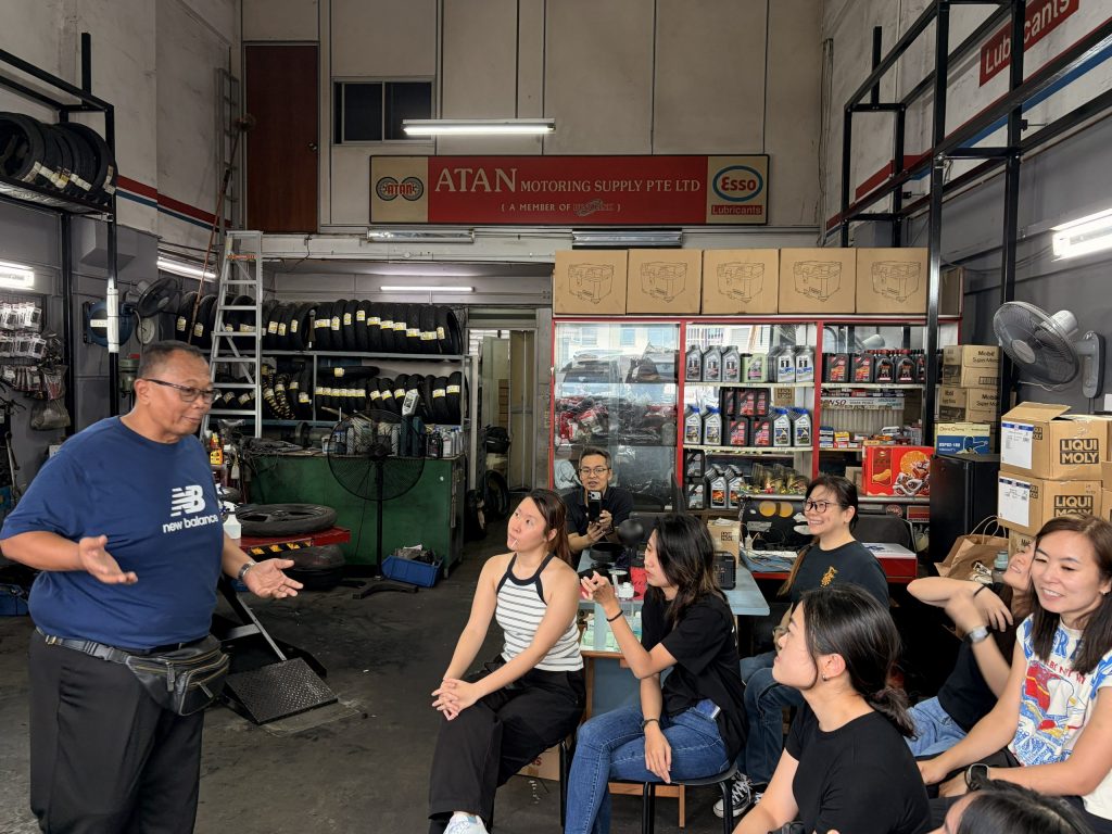 Conceptualised & structured by LUI, this session was conducted in collaboration with Atan Motor Supply Pte Ltd, our partner for this initiative, who provided the workshop venue, mechanical expertise, visual reference charts, and technical demonstration support to enhance applied learning.